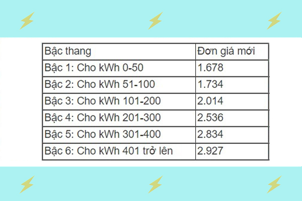 Tiền điện cần chi trả được chia thành 6 bậc
